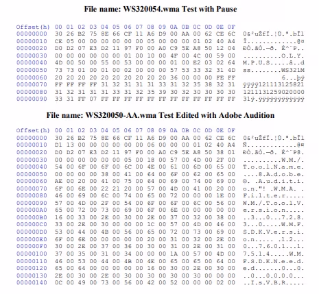 1. Submitted file Olympus-WS-320050.WMA is consistent with an original recording made by an Olympus WS-321M. A Pause/re-start event is present at approximately 2.7 seconds.