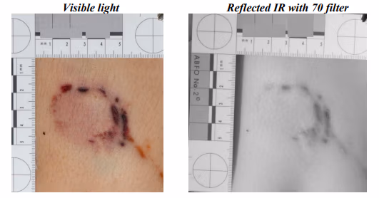 Note: IR penetrates the skin showing deeper bruising. However, it may not be the best technique to use if the bruising is superficial.